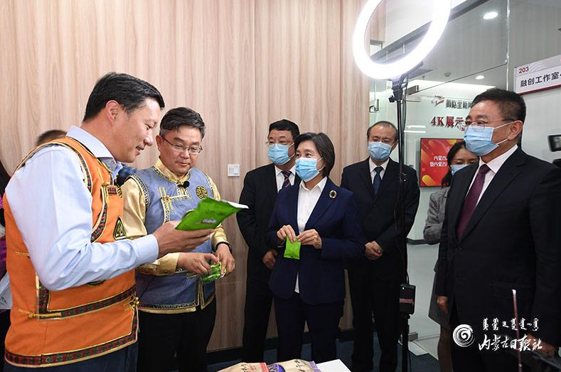 5月8日下午,內(nèi)蒙古品牌形象宣介活動(dòng)在呼和浩特啟動(dòng)。自治區(qū)黨委副書(shū)記、自治區(qū)主席布小林,自治區(qū)黨委常委、自治區(qū)常務(wù)副主席馬學(xué)軍,自治區(qū)黨委常委、宣傳部部長(zhǎng)白玉剛,自治區(qū)副主席鄭宏范參觀直播帶貨活動(dòng)。