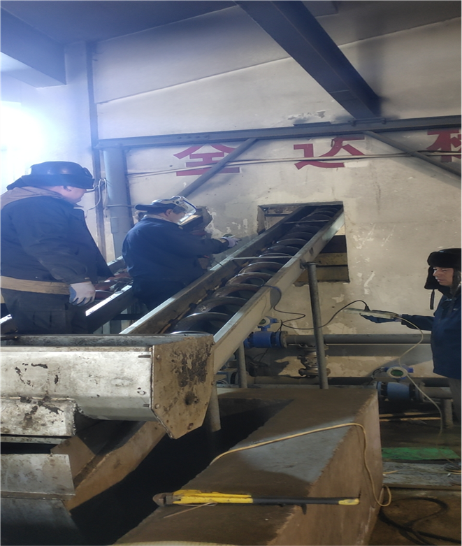 1月5日上午,因設(shè)備超負(fù)荷運(yùn)行,污泥處理系統(tǒng)斜螺旋再次發(fā)生斷裂,無法正常使用,為保證生產(chǎn)正常運(yùn)行,機(jī)修段全體人員再次頂著嚴(yán)寒,全力搶修,更換新的污泥處理系統(tǒng)斜螺旋,努力保證污泥處理系統(tǒng)安全穩(wěn)定運(yùn)行。