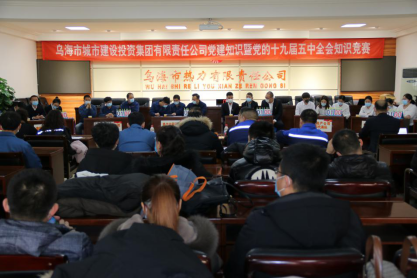 1月15日上午,由烏海市城市建設投資集團有限責任公司黨委主辦的黨建知識暨黨的十九屆五中全會知識競賽決賽在烏海市熱力有限責任公司開賽。來自7個子公司的8支代表隊進入決賽。市投資集團公司黨委書記郝關峰、市投資集團紀委書記張永東、黨群部副部長陳鶴先、供水公司黨委副書記王永斌、濱河房地產黨支部書記、總經理蘇培智及熱力公司領導班子出席了本次比賽。