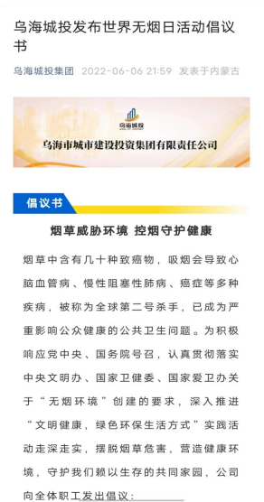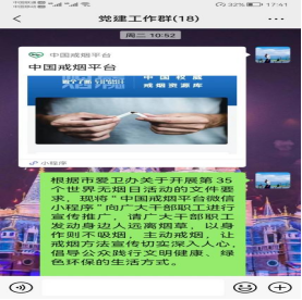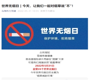 (集團公司、市熱力公司利用微信公眾號宣傳推廣控煙科普知識、發(fā)布無煙日活動倡議。)
