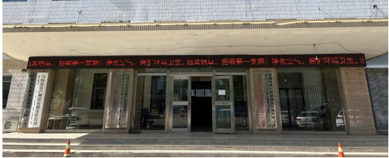 (濱河房地產(chǎn)公司利用辦公樓LED電子屏滾動式播放無煙日為主題的宣傳標語)
