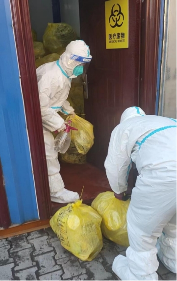 寒冬中有這樣一群人,他們?nèi)粘鐾須w,往返于三區(qū)各大醫(yī)院、隔離酒店、隔離卡點(diǎn)、傳染病醫(yī)院、發(fā)熱門診,穿梭在城區(qū)各大小區(qū),他們?nèi)蔽溲b,身著防護(hù)服,將一袋袋醫(yī)療廢物垃圾,安全轉(zhuǎn)運(yùn)到集中處置點(diǎn),徹底阻斷醫(yī)廢垃圾造成二次感染風(fēng)險,牢牢守住防疫最后一道防線。自從10月初以來,市污水處理公司醫(yī)廢垃圾轉(zhuǎn)運(yùn)組全體工作人員以廠為家、閉環(huán)管理已經(jīng)40余天,他們放棄與家人團(tuán)聚,與親人相伴,日復(fù)一日,兩點(diǎn)一線,晝夜兼程,在醫(yī)廢垃圾安全轉(zhuǎn)運(yùn)戰(zhàn)場上默默付出,逆風(fēng)而行,用行動為抗擊疫情、阻斷病毒傳播貢獻(xiàn)自己的力量。
