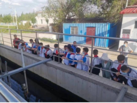活動(dòng)中,市污水處理公司水處理工段段長李帥同志圍繞我公司污水處理工藝、流程、運(yùn)行狀況、出水水質(zhì)排放標(biāo)準(zhǔn)、各構(gòu)筑物和設(shè)備的工作原理進(jìn)行了講解。并帶領(lǐng)同學(xué)們參觀了氧化溝、二沉池等污水處理構(gòu)筑物,讓大家了解了污水處理的工藝流程,“零距離”體驗(yàn)了“污水”變“清流”的過程。