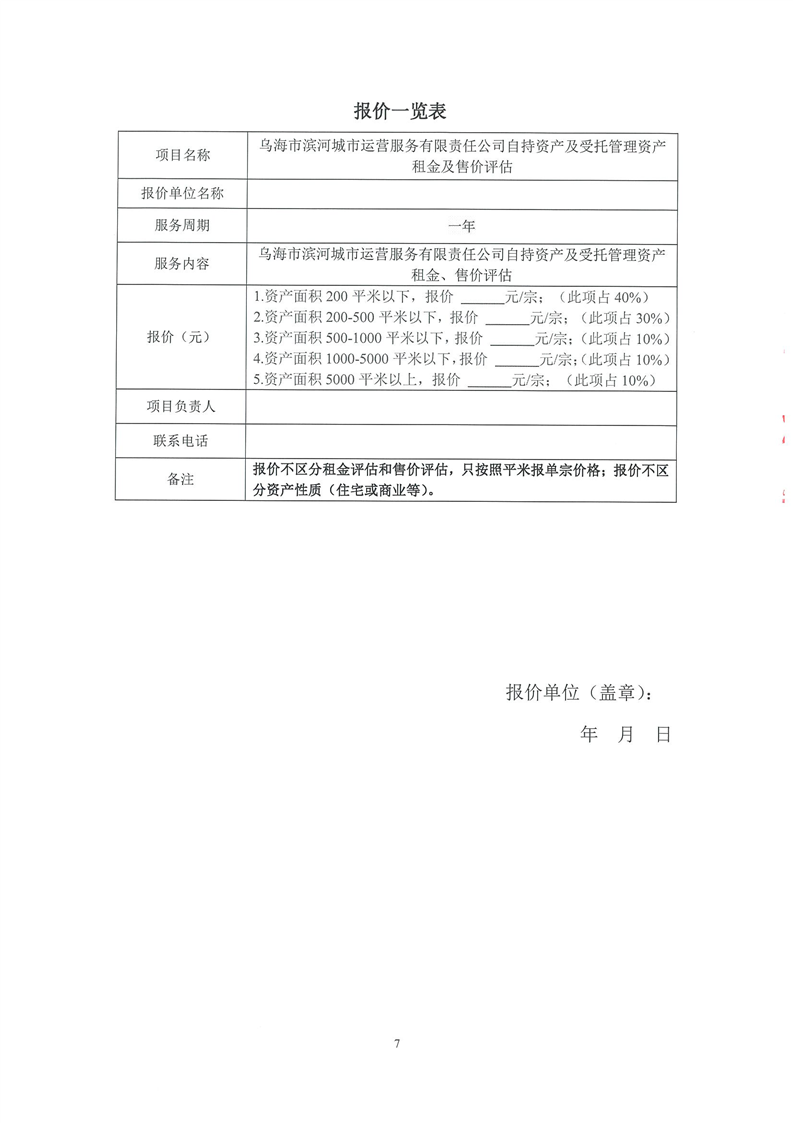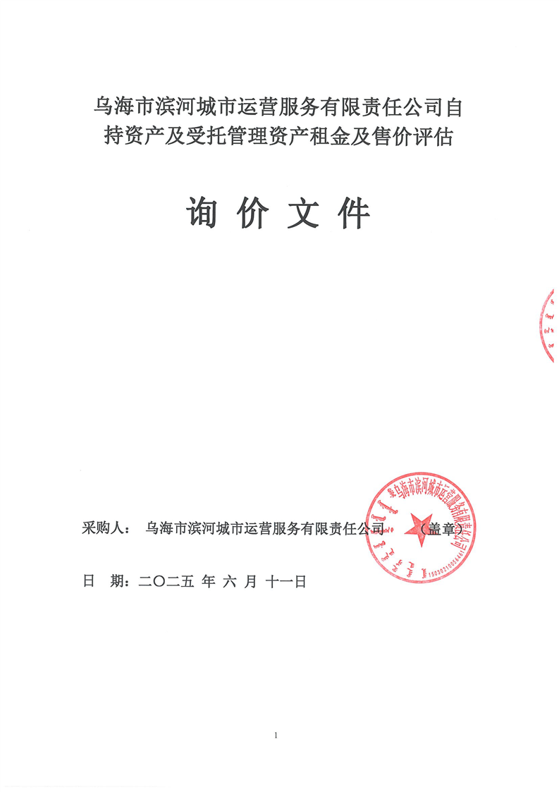 烏海市濱河城市運(yùn)營(yíng)服務(wù)有限責(zé)任公司自持資產(chǎn)及受托管理資產(chǎn)租金及售價(jià)評(píng)估詢價(jià)文件
