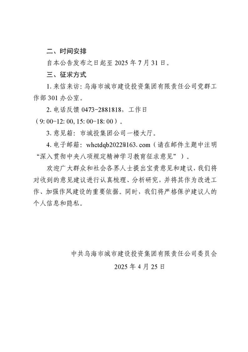 - 2025-10-14烏海市城市建設(shè)投資集團(tuán)有限責(zé)任公司關(guān)于終止與內(nèi)蒙古華格項目管理咨詢有限責(zé)任公司業(yè)務(wù)合作的通知