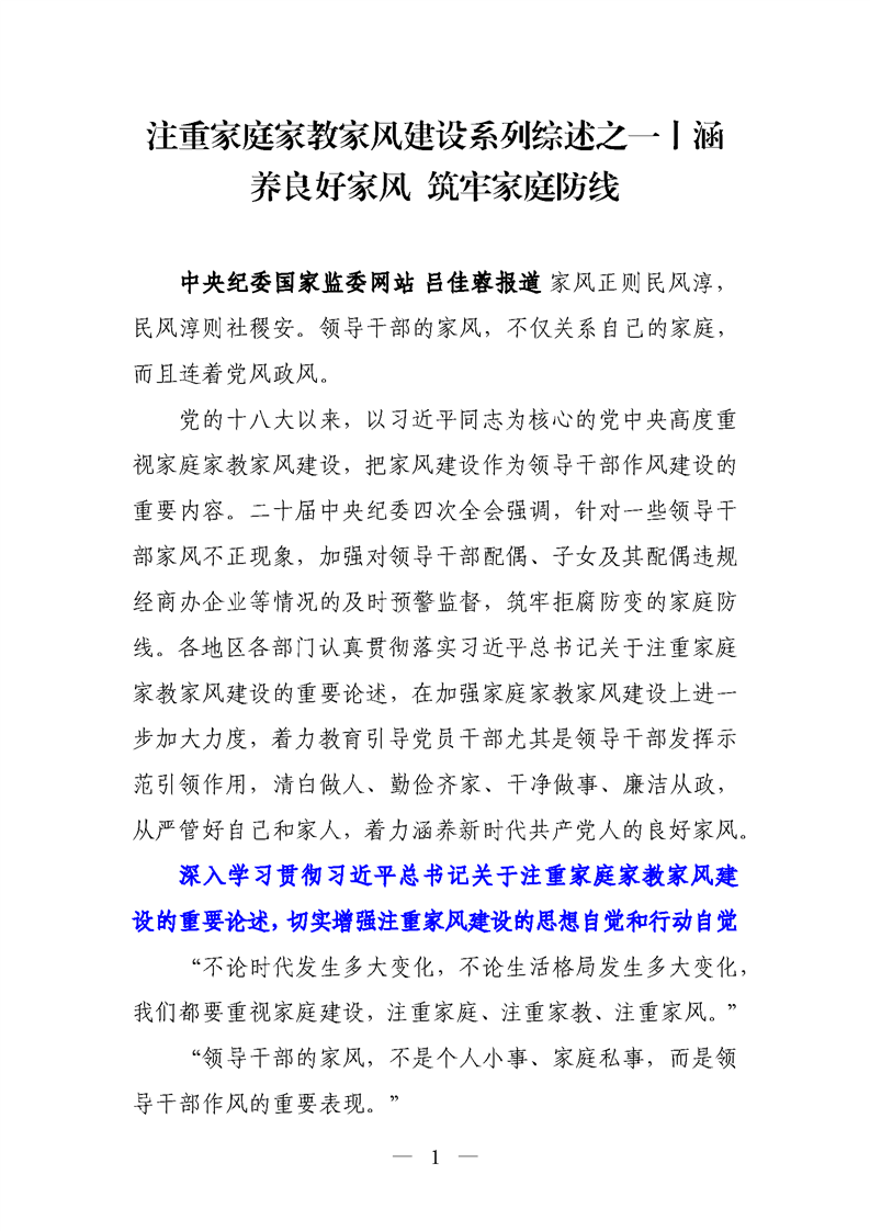 注重家庭家教家風(fēng)建設(shè)系列綜述之一丨涵養(yǎng)良好家風(fēng) 筑牢家庭防線
