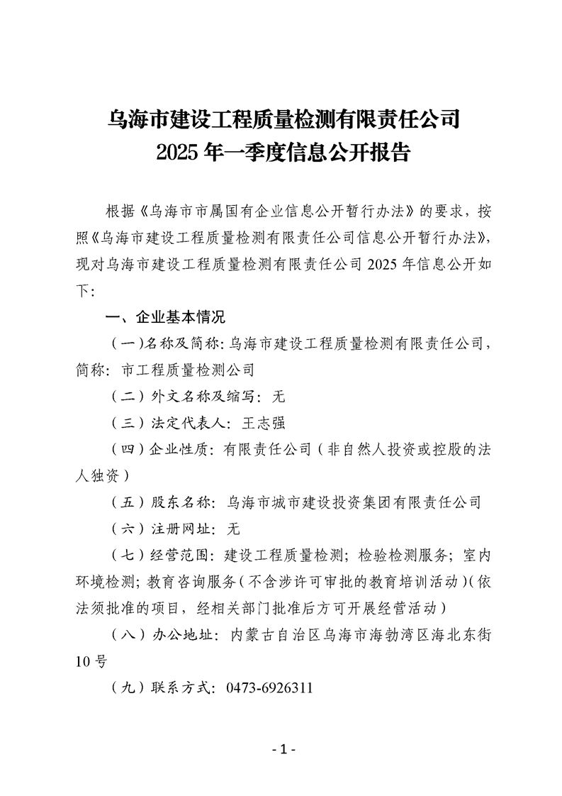 - 2025-07-28烏海市建設工程質量檢測有限責任公司2025年二季度信息公開