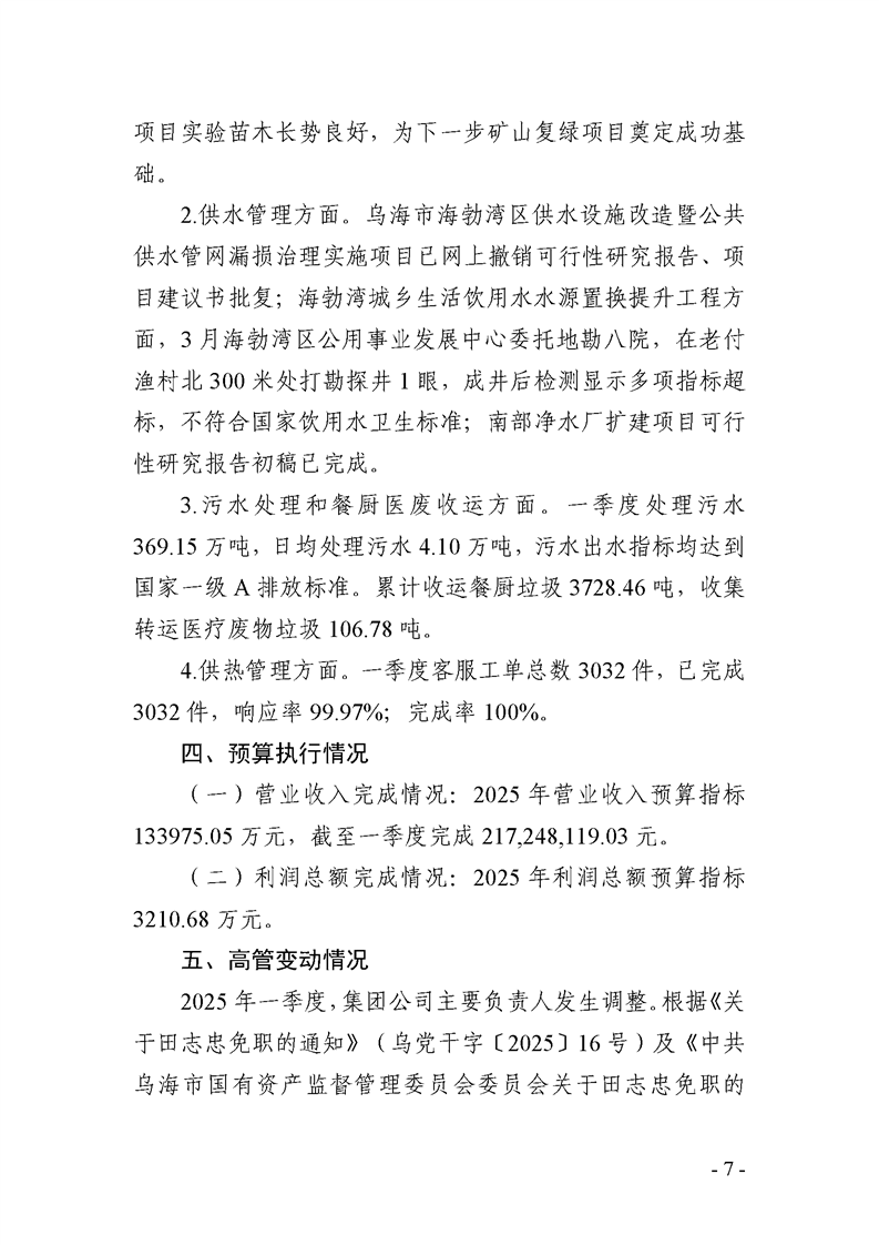 - 2025-07-25烏海市城市建設(shè)投資集團(tuán)有限責(zé)任公司 2025年度第二季度信息公開(kāi)報(bào)告