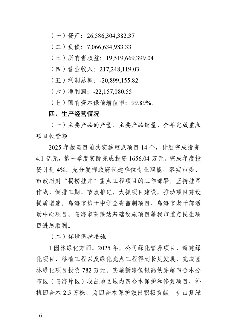 烏海市城市建設(shè)投資集團(tuán)有限責(zé)任公司 2025年度第一季度信息公開(kāi)報(bào)告
