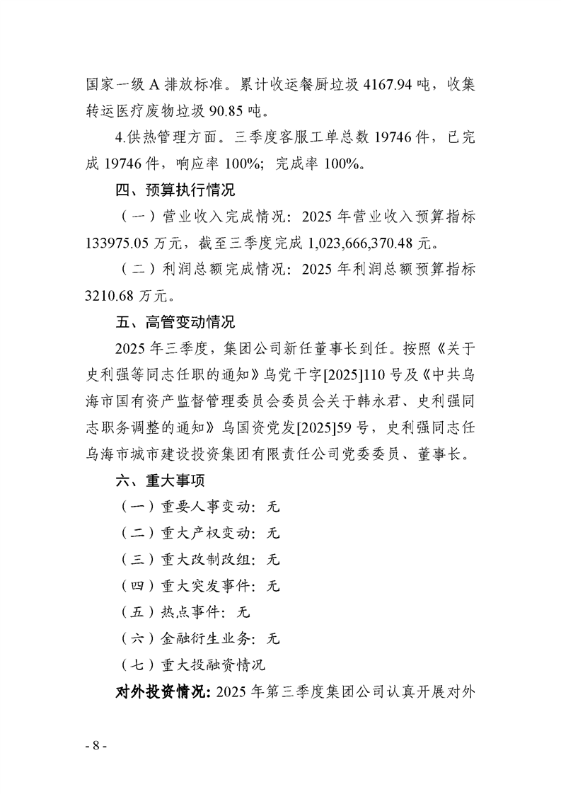 - 2025-07-25烏海市城市建設(shè)投資集團有限責任公司 2025年度第二季度信息公開報告