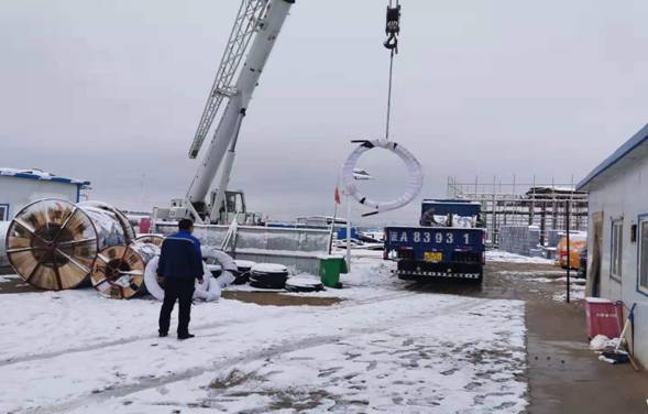 (城建公司:低碳產(chǎn)業(yè)園供水工程冒雪吊裝電纜)